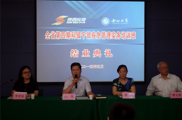 5月29日,由我院和陕西省应急管理办公室联合举办的“全省第四期科级干部应急管理实务培训班”圆满结束。来自全省各市县和省级部门的60位学员进行了为期一周的应急管理实务培训。