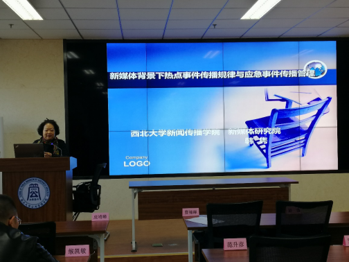 第三场专题讲座,由西北大学新闻传播学院教授韩隽演讲,题为《新媒体背景下热点事件传播规律与应急事件传播管理》。