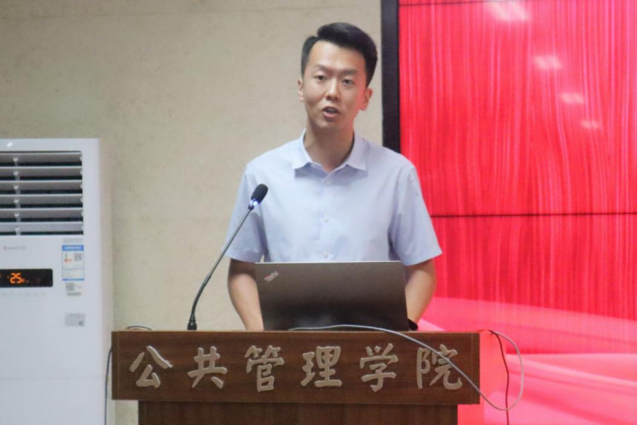教师代表席恒教授解读了西大“公诚勤朴”的校训以及“正学善行”的院训,希望新生同学可以深刻理解西大精神和公管精神,并从中汲取养分和力量。同时,席教授从学什么、怎么学、学到什么程度等角度出发论述了大学学习的特点并提出了对同学们专业学习上的基本要求。