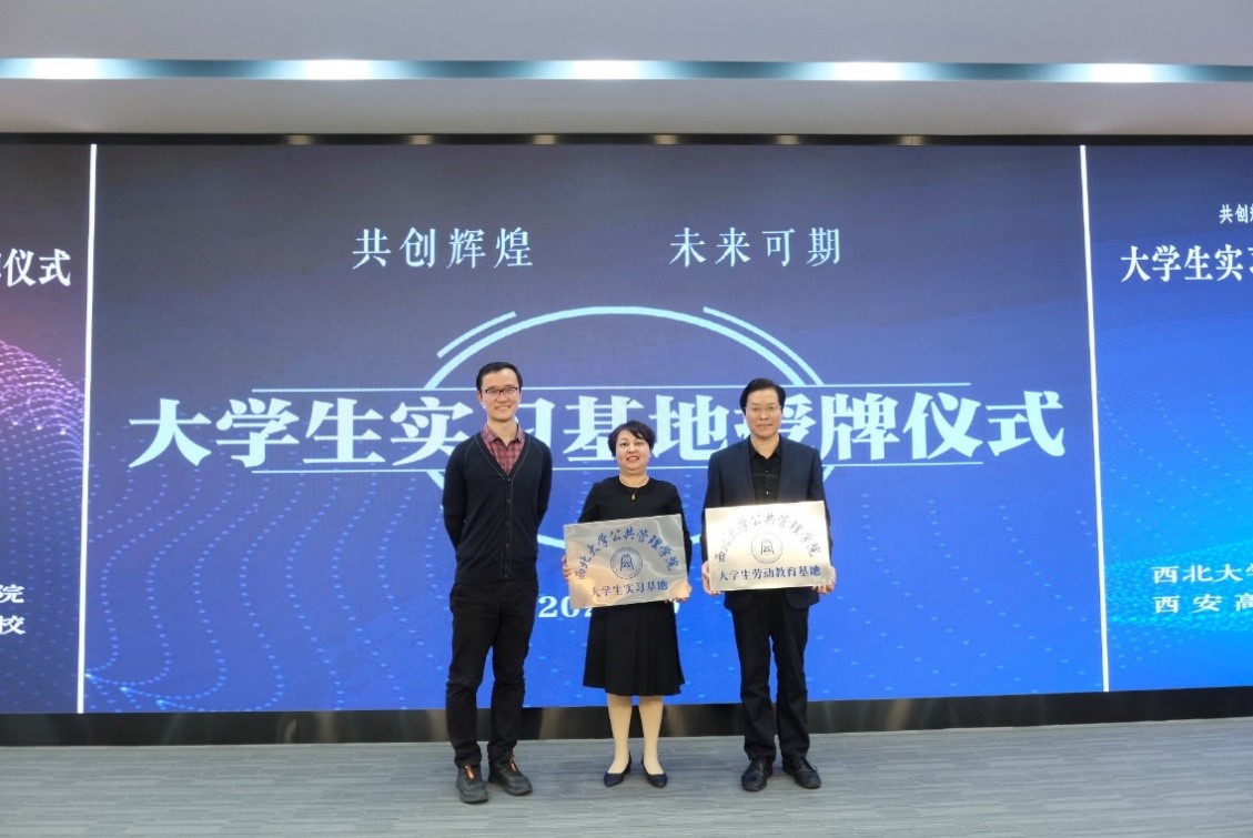 2021年9月27日下午,565net必赢客户端与西安高新第二学校大学生实习基地揭牌仪式在西安高新第二学校隆重举行。公共信息资源管理系王铮系主任、西安高新第二学校王颖副校长、党办王增明主任共同进行了大学生实习基地、大学生劳动教育基地的授牌与接牌仪式。西安高新第二学校各处室领导、中学生代表、参加教学实习活动的西北大学565net必赢2018级本科生代表共同出席了活动。本次活动由西安高新第二学校初中部教务主任刘建虎主持。