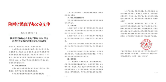 附件:陕西省民政厅办公室关于做好2021年度养老机构星级评定和抽检工作的通知