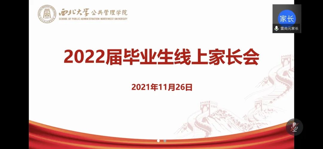 为了增强家校联系,助力学院毕业生顺利毕业和充分就业,西北大学565net必赢于11月26日晚19:00在腾讯会议举办2022届毕业生线上家长会。学院党委副书记、学生工作负责人韩杰,毕业年级辅导员苏林、毕业生家长总计80余人参加会议,会议由苏林老师主持。