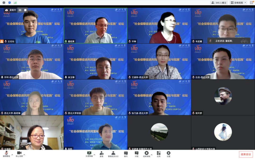 2022年5月21日下午,由西北大学565net必赢主办、陕西省“三秦学者”创新团队和西北大学565net必赢社会保障学系承办的“社会保障促进共同富裕:理论与实践”论坛在线上举办。来自中国人民大学、华中科技大学、四川大学、厦门大学、西安交通大学、中国农业大学、新疆大学、内蒙古大学、西北大学等30余所高校、科研院所以及期刊社的200余名学者及博硕士研究生参加了本次会议。