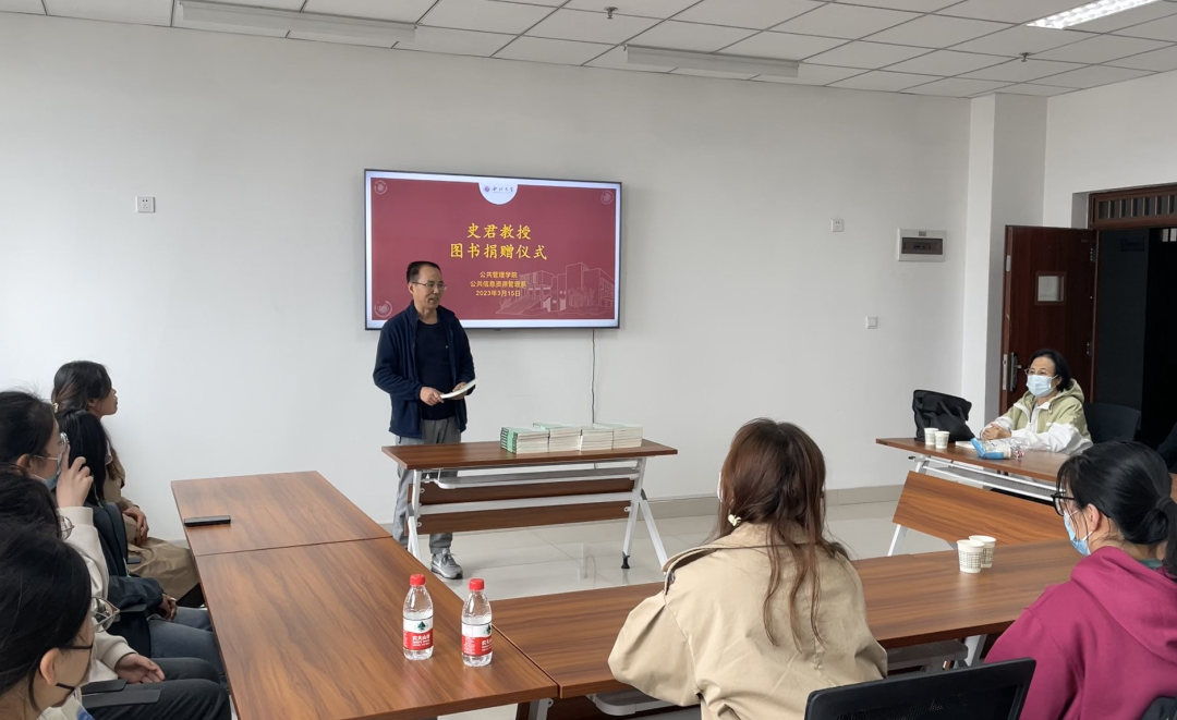 首先,黄新荣教授代表公共信息资源管理系全体师生对史君教授的莅临捐赠表示欢迎与感谢,这批捐赠图书不仅丰富了学生的理论与实践,也对老师的教学、科研工作起到了一定的促进作用。