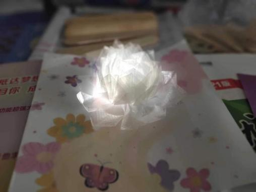 用透明纸页折出的莲花,出淤泥而不染,濯清涟而不妖,就宛如资助之花美丽绽放。