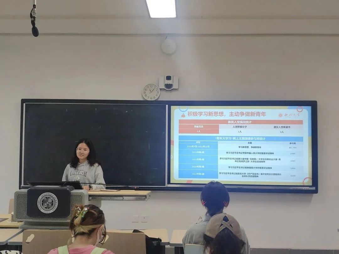 接下来,颜洛霖、曾宁晶、沈小雅分别代表各小组发言。颜洛霖同学表示,自己能够做到上课认真听讲做好笔记,下课认真完成作业,课余时间学习了舞蹈,取得了一定的进步。面对下一阶段,她计划重点复习六级与期末考试,以行动缓解焦虑,把握时间,争取好成绩。沈小雅同学分享了自己在党课学习、青年大学习等思想提升方面的感悟,号召同学们踔厉奋发、争做时代有为青年。曾宁晶同学则分析了自己在课下学习生活中时间规划不够合理的问题,同时分享了小组同学给予的建议。