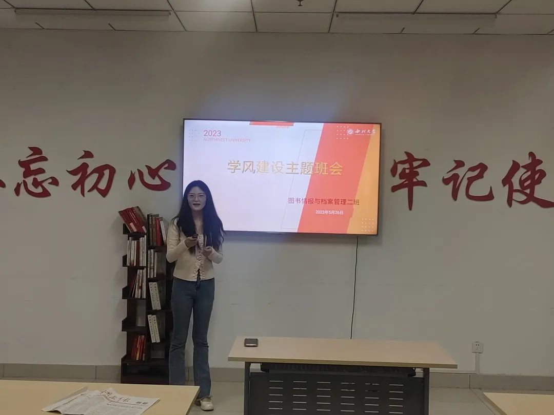 为不断激发同学们学习的积极性和主动性,创造一个良好的学习环境,解决同学们在学习上的疑虑,明确同学们的前进方向,加强班级的学风建设,2023年5月26日,2022级图档二班在西学楼1515开展了学风建设主题班会。