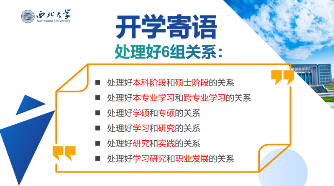 此次见面会旨在促进硕士新生之间以及师生之间的相互了解,在开学伊始帮助硕士新生快速融入新环境,适应新身份,开启新征程。会议伊始,王铮系主任首先代表公共信息资源管理系对2023级的研究生同学的加入表示热烈欢迎。其后王铮老师对有关学科专业情况进行了详细介绍,全方位向新生介绍了信息资源管理学科专业的历史沿革、学科传统、历史积淀、发展现状、研究方向、人才培养情况以及学生就业发展前景等。接下来王铮老师以“处理好6组关系”为主题作为对2023级图情档全体硕士的寄语。王铮老师用6组关键词,提醒同学们要尽早明确和树立奋斗目标、选择和确定研究方向,同时也鼓励同学们不仅要积极完成课程计划和课程学时,也要拓展学科广度,注重综合素质的培养,进行多领域的学科学习与团队协作。