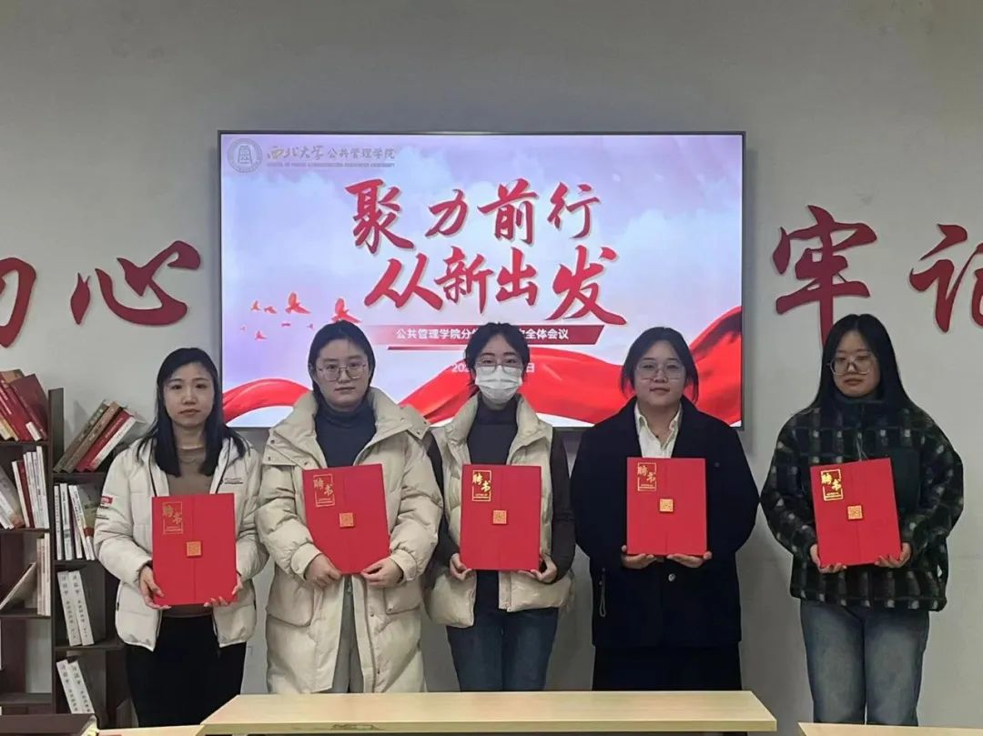 随后,分党校总负责人席祎瀛同志为各部门负责人和分党校新成员颁发聘书。各位成员郑重接过证书,标志着大家正式成为分党校的一员,聘书以红色为主,带有分党校的鲜明红色基因底色,凸显党务工作者的责任使命感,承载着组织的殷殷寄托与深情期待。