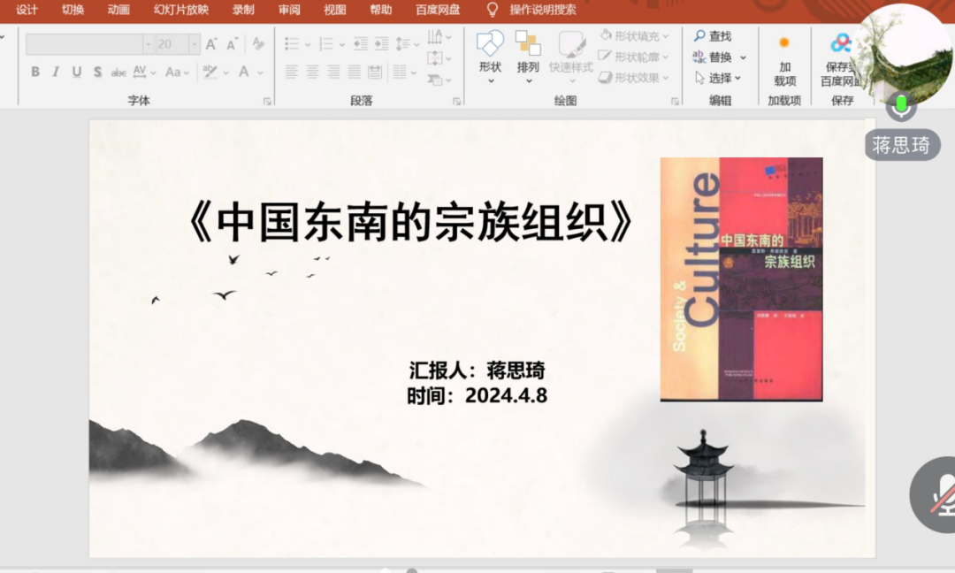 2023级行政管理专业硕士研究生蒋思琦分享的书籍是英国人类学家莫里斯·弗里德曼所著《中国东南的宗族组织》。她从作者简介、背景介绍、内容梗概、理论与反思四个方面进行汇报,指出该书是弗里德曼基于自己在新加坡等地的华人社会进行的田野调查结果,结合当时一些文献资料所著,该书的写作方式更偏向于论文合集,引用大量华人研究者的观点,对中国东南地区,尤其是广州、福建等地的宗族文化进行深入研究。虽然该书写于上世纪60年代,但成为人类学研究中首次将宗族作为正式研究对象的书目,书中的理论成果“弗里德曼范式”是目前研究中国乡土村落的重要研究范式之一,这对于研究宗族管理或是基层管理、乡村治理具有重要指导意义。