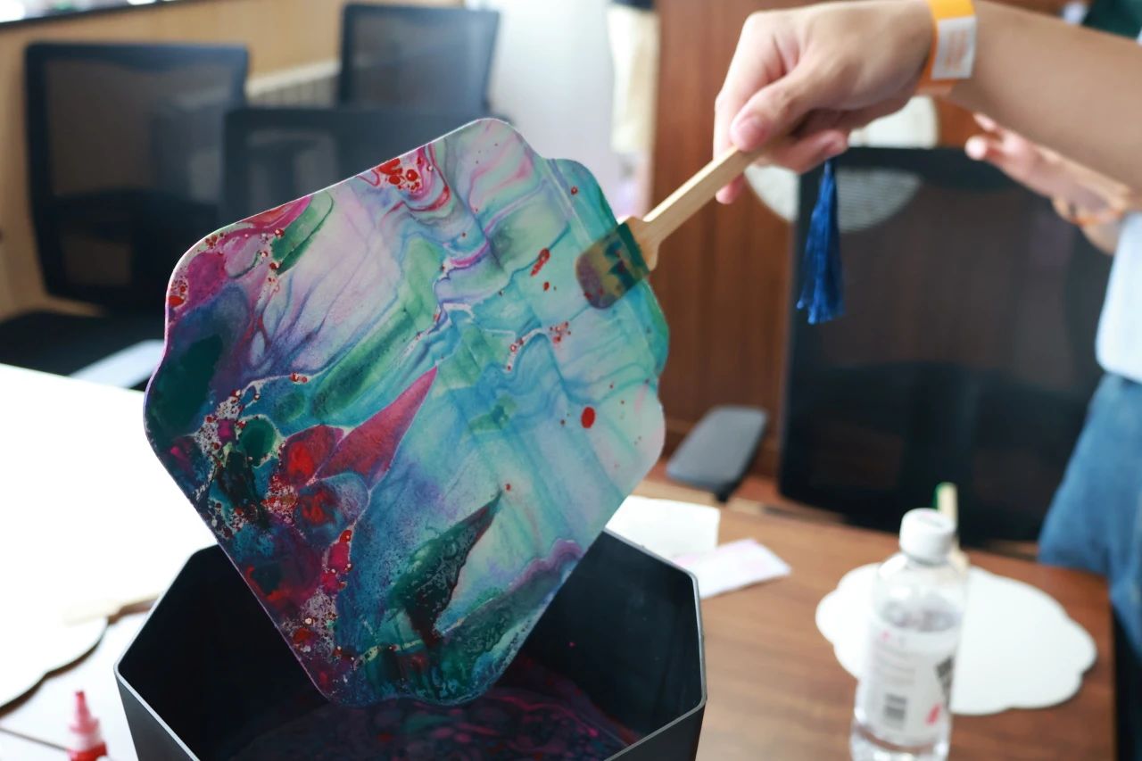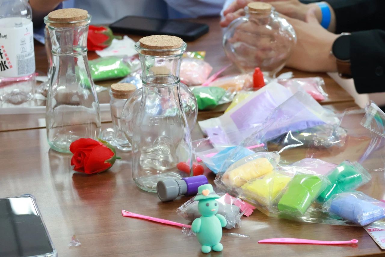 在互动手作环节,成功集齐印章的队伍在此完成了属于自己的独特手工作品包括彩色砂瓶、漆扇、创意手链、黏土画等。在此过程中,同学们能体会到手工艺品特色的制作工艺,了解其制作过程。