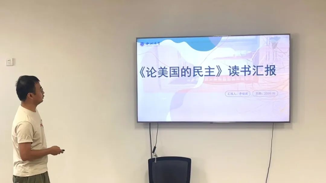 2023级应急管理专业硕士研究生李俊涵分享的书籍是托克维尔的《论美国的民主》,他从写作背景、三种要素对民主的影响、作者的观点与分析、现代意义与启示等四方面分享自己的读书感悟。首先,他从三个角度阐述了自己的推荐理由,对成书背景进行系统的剖析,讲解了当时法国和美国的整体情况并将两国彼时的基本国情进行对比;其次,他按照托克维尔的写作逻辑,从自然环境、法制、民情三个角度叙述美国社会的民主制度运行情况,并指出这三个要素对民主的影响是依次递增的;接下来,他对作者关于美国民主的思考进行罗列,指出民主源于平等、自由对于民主的形成也是不可或缺的,并道出民主的一系列好处;最后,针对作者在本书中对于民主制度的反思--"多数"暴政的避免,他也从扩大司法权,提倡陪审制度和弘扬政治自由这几个方面提出行之有效的规避方式。