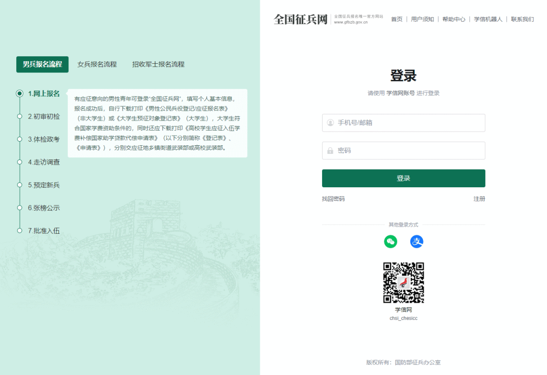 同时,应征青年可以自行网上报名或到当地乡镇(街道)人民武装部请工作人员协助网上报名。