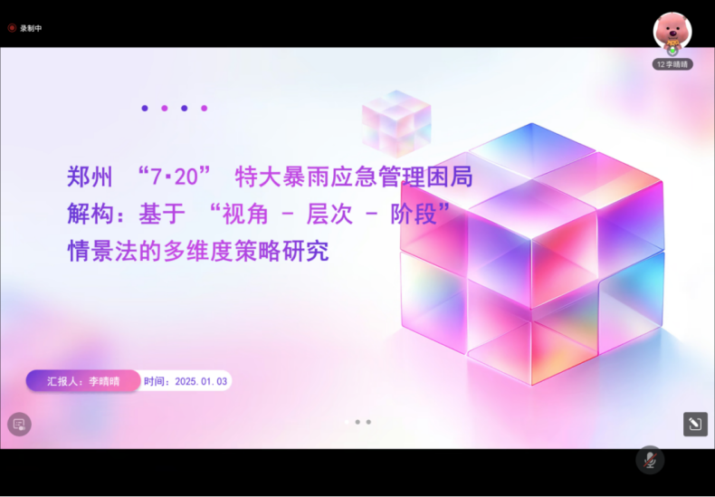 会议伊始,主持人王宣伊首先对本次会议的评审嘉宾、答辩参与者以及会议的具体安排进行了简要的介绍。接着,15位参赛者依照既定顺序,逐一对其论文进行了深入细致的汇报,内容涵盖研究背景概述、理论框架构建、研究方法应用、模型设计与验证以及研究成果总结等多个维度。评议嘉宾张瑜芫、张紫嫣和朱哲茹从论文的结构合理性、逻辑严谨性、内容充实度及研究规范性等多个方面进行了全面而深刻的点评,并针对论文中存在的问题与参赛者展开探讨,为参赛者丰富研究内容,提升研究质量提供了宝贵建议。