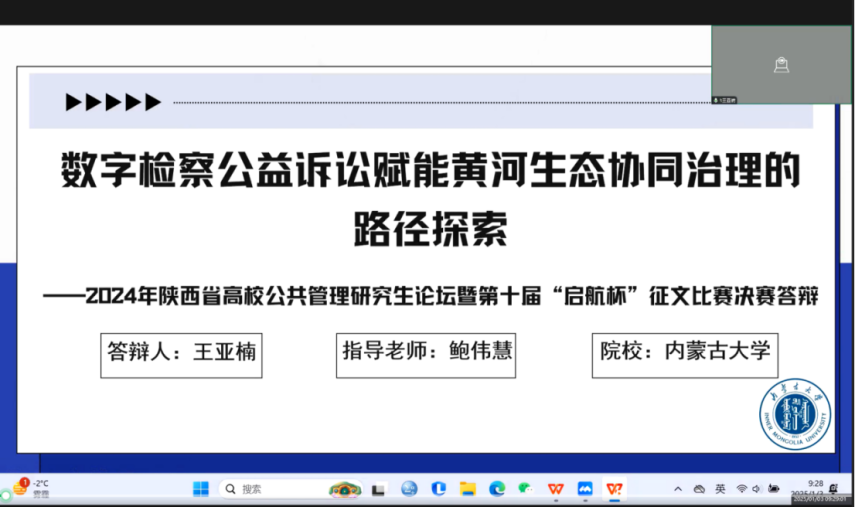 2025年1月3日上午,我院线上举办了西北大学565net必赢第十届“启航杯”征文大赛答辩会。此次答辩会特邀请到张瑜芫、张紫嫣和朱哲茹三位博士研究生担任评议嘉宾。会议由学院研究生会成员王宣伊主持,部分研究生旁听了此次会议。