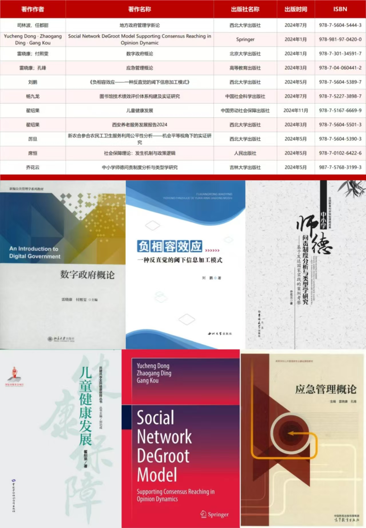 图片2024年,学院继续加大有组织科研力度,全面激活学院虚体科研机构和实体科研机构等科研平台,持续整合科研团队资源,积极培育科研成果,推动科研协同攻关和学科交叉融合,在公共管理基础理论与大问题、基层社会治理与跨域生态治理、社会保障基础理论与民生政策、应急管理理论与政策、行为公共管理、公共文化服务等领域研究特色更加明显。通过学术沙龙、项目论文打磨会、专栏组稿等方式,积极培育科研成果。积极争取政府、企业等外部科研资源,落地更多科研合作项目,通过发布蓝皮书等方式扩大学院社会影响力。
