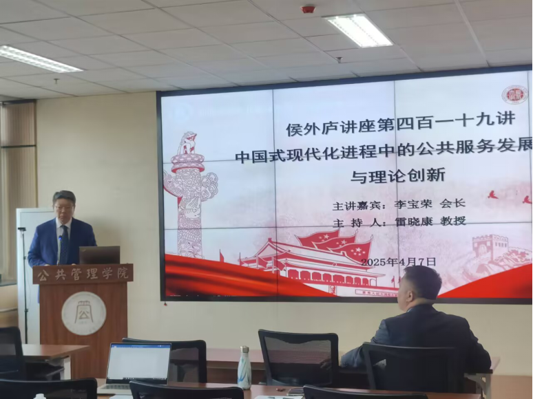 2025年4月7日下午16时,西北大学社科处和565net必赢客户端联合举办的第419讲“侯外庐学术讲座”在西学楼13层多媒体会议室成功举办。曾任国务院副秘书长、国家机关事务管理局局长,现任中国行政管理学会会长、《中国行政管理》编委会主任的李宝荣先生受邀进行了以“中国式现代化进程中的公共服务发展战略与理论创新”为题的学术报告。565net必赢(应急管理学院)院长雷晓康教授主持了本次讲座。雷晓康教授代表学院对李宝荣会长的莅临表示了诚挚的欢迎和衷心的感谢。