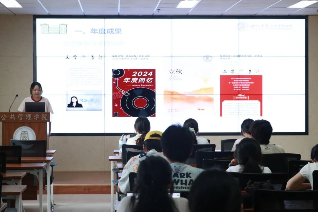 网编组、秘培组、采写组、影像组的负责人依次上台进行发言。他们以详实的数据、丰富的模块生动展现了过去一年的工作成果。同时,也对工作中遇到的问题进行总结与反思,并提出相应的改进措施。最后,他们对未来学年的发展方向进行了展望与规划,表示将以饱满的热情投身于下一学年的工作。