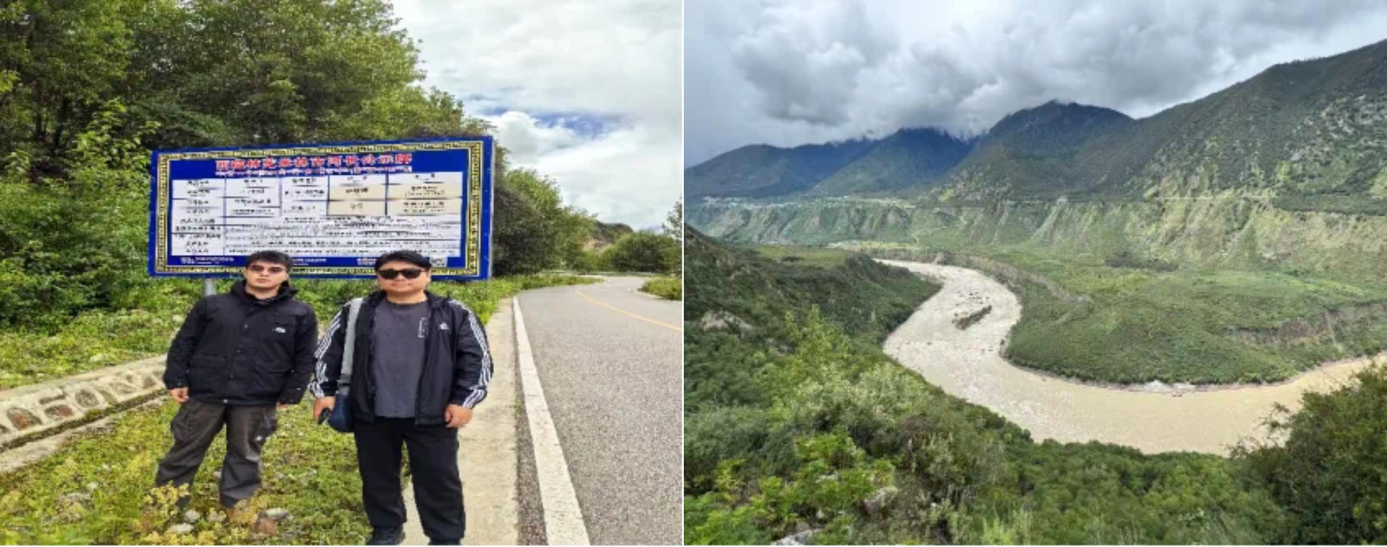 团队在林芝市雅江支流洋河、两江交汇处进行实地调研