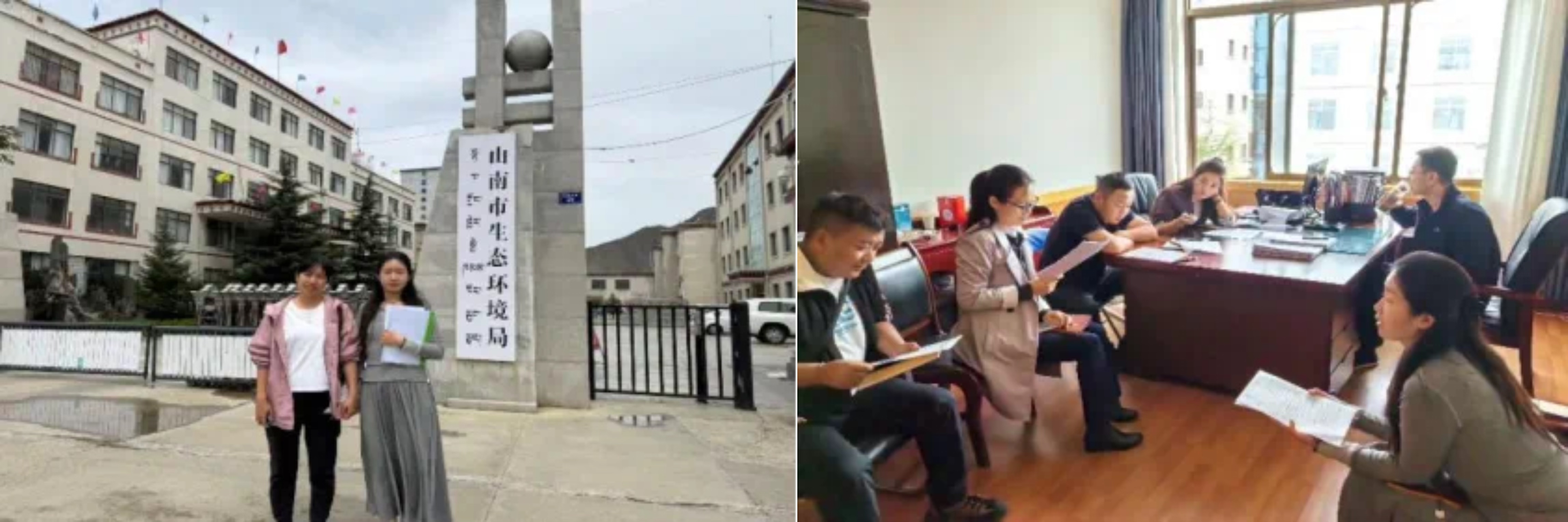 在山南市,团队与市生态环境局、林业和草原局、自然保护区管理局进行座谈交流,就生态敏感区保护、沙化治理、生态效益价值实现等议题进行了探讨,并专程赴泽当雅江大桥段,实地考察了雅鲁藏布江干流雅砻河的河道形态、水质状况及沿岸生态保护措施落实情况和补偿政策落地效果。
