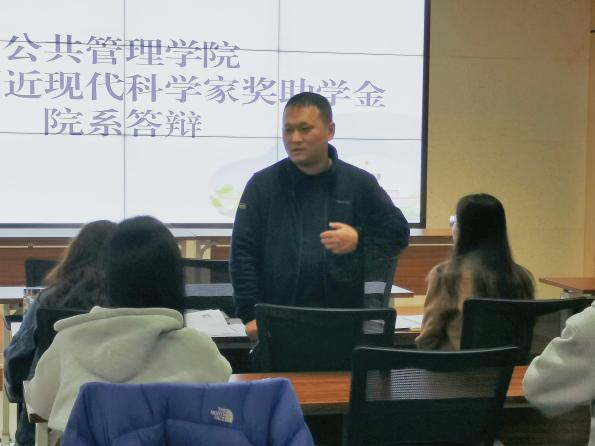 院系答辩主要分为三个部分,学生抽取题目回答、个人陈述以及评审提问。答辩开始,八位同学依次在二十四位科学家中随机抽取了一位科学家并对其生平事迹、伟大影响、自身感悟等进行具体陈述。在八位同学慷慨激昂的表述中,我们感受到科学家们的默默付出与无私奉献。就如习近平总书记所言,“干惊天动地事,做隐姓埋名人”“伟大出自平凡,英雄来自人民”。正是因为有这些科学家们的无私付出,我们的祖国才能变得不断强盛。同时,八位同学还就自身学习能力和综合素质进行了陈述,并回答了评审老师所提出的问题,使得院系学生工作领导小组对自主申报同学的综合能力有了更深入的了解。