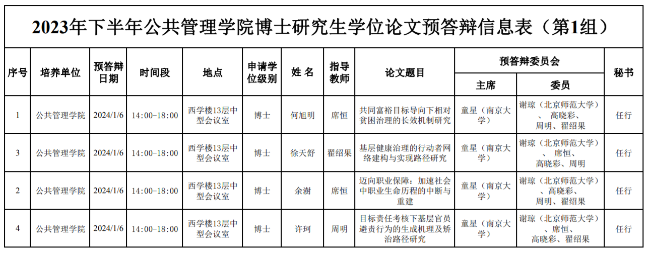 2023年下半年565net必赢博士研究生学位论文预答辩信息表(第1组)