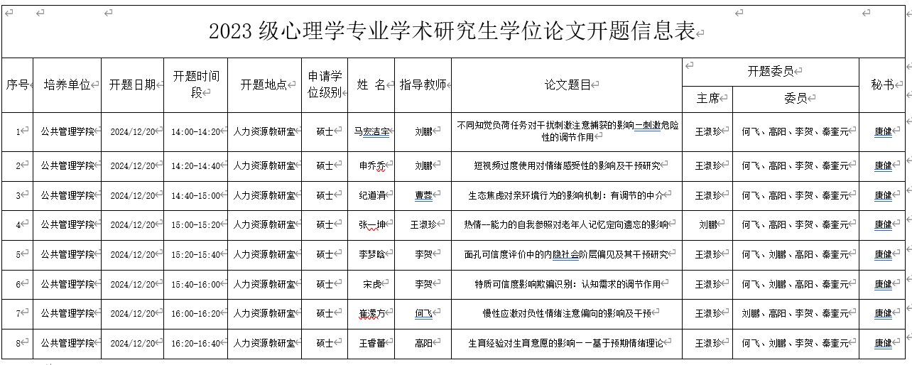 (2023级心理学专业学术研究生学位论文开题信息表)