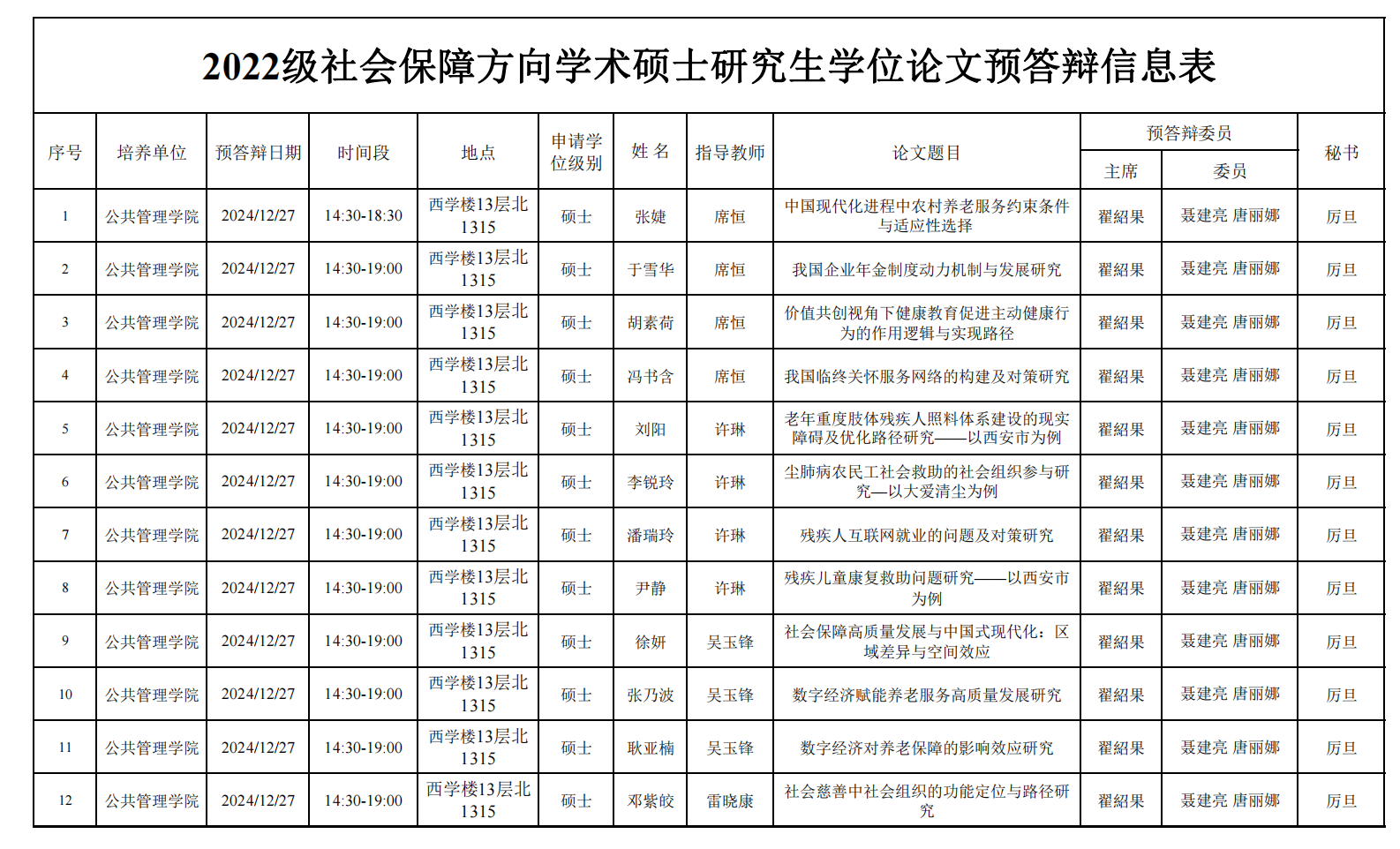 (2022级社会保障方向学术硕士研究生学位论文预答辩信息表)