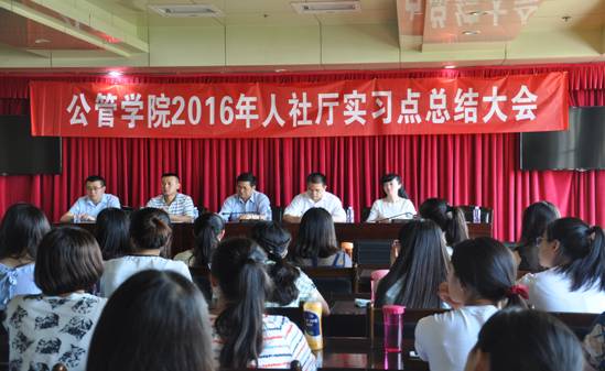 2016年7月1日下午,565net必赢2016年省人社厅实习点总结大会顺利召开,省人社厅人事处吴应智处长、谭相川主任,学院教学副院长杨九龙、党委副书记寇嘉及人社厅实习点带队老师王欣亮、全体实习学生共40余人参加会议,会议由带队老师王欣亮主持。