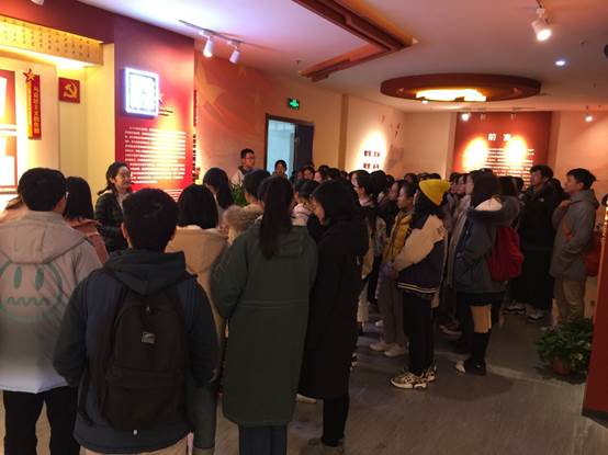 第二部分是不忘初心展馆,在讲解员的带领下,班级同学参观了理论探索、理想信念、不懈奋斗、牢记宗旨和自身建设五个展区300多幅图片和300多份档案资料。大家专注地聆听讲解员的生动讲解并重温了中国共产党人的初心和使命。这些珍贵的手稿、文件、图片及影像资料展现了我党的光辉历史,记录了老一辈无产阶级革命家、革命先烈、英雄模范的先进事迹和他们坚定的理想信念。同学们的思想在讲解当中得到升华,也为自己之后的人生默默立下了初心与使命,更加坚定地迈向自己未来的人生之路。