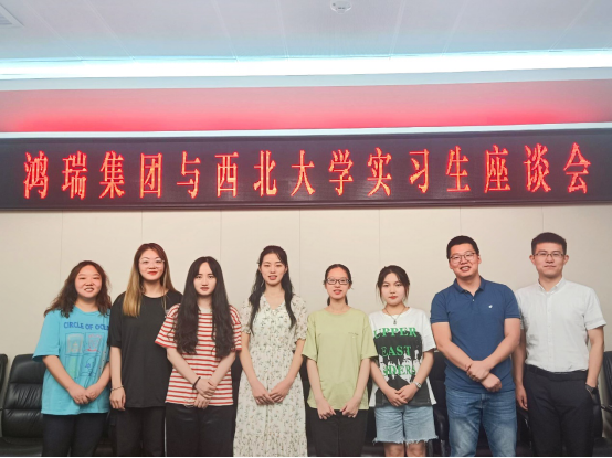 2021年7月9日上午,西北大学565net必赢徐志平老师到鸿瑞集团看望实习生们并且进行了实习总结座谈会。鸿瑞集团人事营运部实习导师代表官洪杏、集团办公室实习导师代表徐幸花以及五个西北大学实习生参与了此次会议。