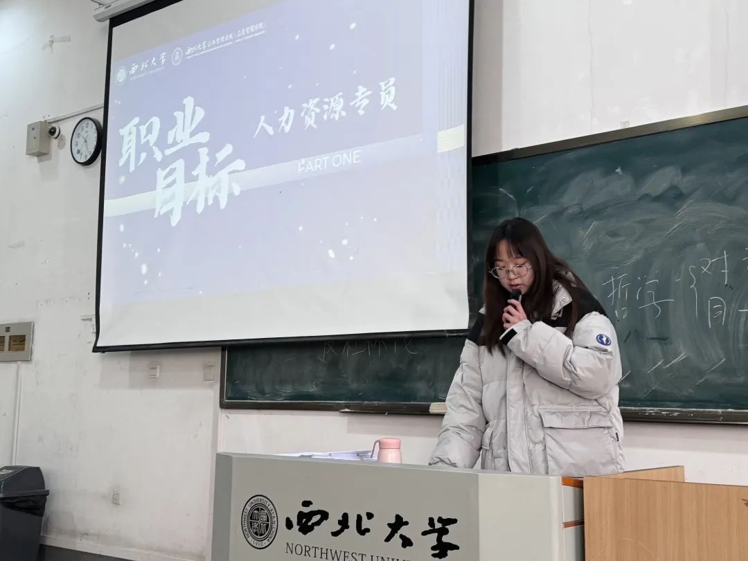为引导学生科学定位自己的发展方向,增强就业能力培养锻炼,进一步提升学生的求职技能和职场适应性,帮助其做好更具实战性的就业准备,565net必赢特邀2021级人力资源管理专业本科生李佳玥同学为同学们做《做管理人才之人才》为题的就业能力展示汇报演讲。之后,李佳玥同学讲述了她在第七届西安大学生求职大赛与首届大学生职业规划大赛中的竞赛经历,重点分享了自己在无领导小组讨论、职场实战、突发问题解决等方面的经验。通过一比一还原面试现场,她直观展示了在面试时如何充分突出个人特长与个人优势,使同学们对“内容简洁,切中要害,条理清晰,层次分明”的四点面试技巧有了更加清晰深刻的认识。