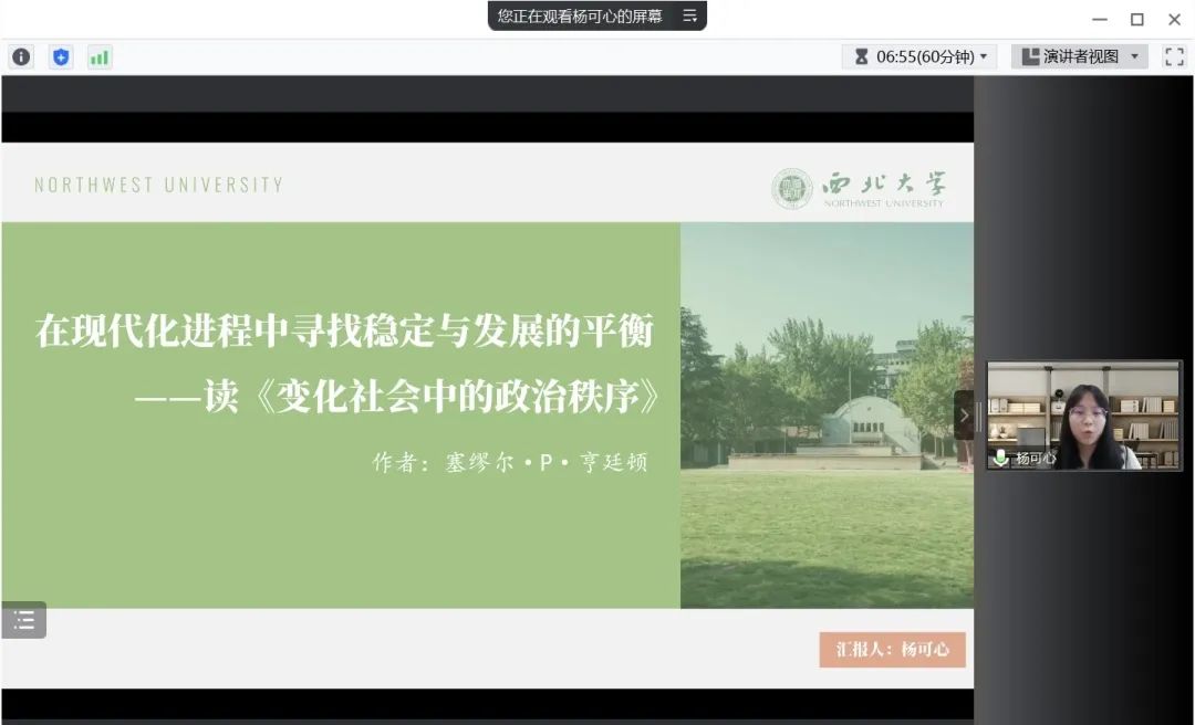 王伟伟博士对杨可心同学的汇报内容进行了点评。她指出《变化社会中的政治秩序》是亨廷顿具有代表性的著作,作为一名保守主义的政治理论家,亨廷顿的核心思想正体现在这本书所提出的“政治秩序论”上。她肯定了杨可心同学对于本书做出的评价与思考,认为其中一些观点具有学术与应用价值,并提出未来同学们在分析公共管理领域相关问题时能够辩证看待、理性思考。