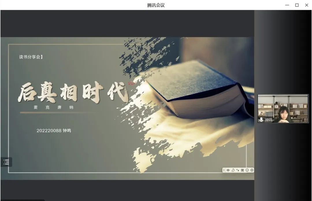 王伟伟博士对其汇报内容进行了点评,她肯定了钟鸣同学的洞察力,并进一步探讨了《后真相时代》的具体内容,提出在真相被操纵、利用时,我们应该保持思想的警惕性和独立性。