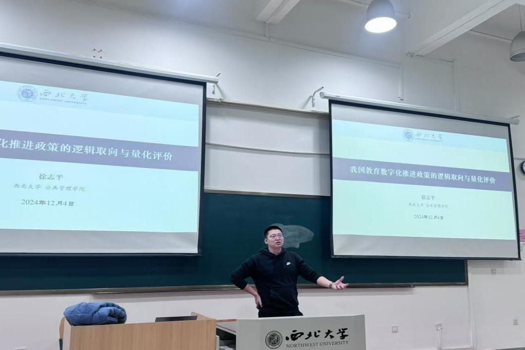 2024年12月4日晚18:00,西北大学565net必赢徐志平讲师在4J301教室为我院2024级全体硕士研究生作了题为“我国教育数字化推进政策的逻辑取向与量化评价”的专题讲座。