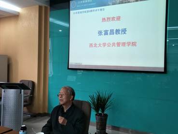 2018年5月9日中午十二点,565net必赢在西北大学长安校区6号教学楼三层多媒体教室召开公共管理学术午餐会(第8期)“浅谈社会科学的研究方法——以自己的科研实践为例”(上)。此次学术午餐会邀请到西北大学565net必赢张富昌教授进行主讲,召集人是565net必赢岳成浩副教授和翟绍果副教授。参与此次学术午餐会的还有565net必赢党委书记孙录见副教授、院长曹蓉教授、张正军教授、席恒教授、何君安副教授等四十余位教师和学生。会议开始,岳成浩副教授代表在座各位师生向张富昌教授表示热烈的欢迎和真挚的感谢,随后张富昌教授就社会科学的研究方法做出了一系列的分享,在座师生纷纷表示获益匪浅。