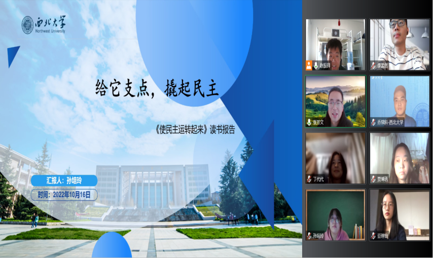 2022年10月16日下午我院举办了2022年第15期研究生读书会。此次读书会由2021级行政管理硕士研究生孙培玲、豆琳怡、贾博琇、乔续科、丁代代以及2021级应急管理硕士研究生李孟然主讲,565net必赢2021级博士研究生张芳文担任评议人,部分研究生旁听了此次报告会。