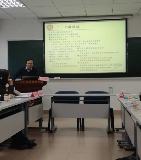 接着,西北大学公共管理学学院副教授翟绍果博士做了“老年人精神健康的需求意愿、影响因素及社会支持研究”的报告。翟老师从“背景介绍”、“文献综述”、“数据来源与变量说明”、“老年人精神健康的需求意愿及影响因素”、“老年人精神健康的社会支持路径”几个方面展开介绍,并指出在老年人精神健康方面,应形成“个体适老、家庭孝老、社会敬老、社区助老、政府安老、市场享老”的老年人精神健康的社会支持体系,通过生命历程社会资本累积机制和合作交往理性协商机制构建健康老龄化社会,推进“健康中国”战略实施。
