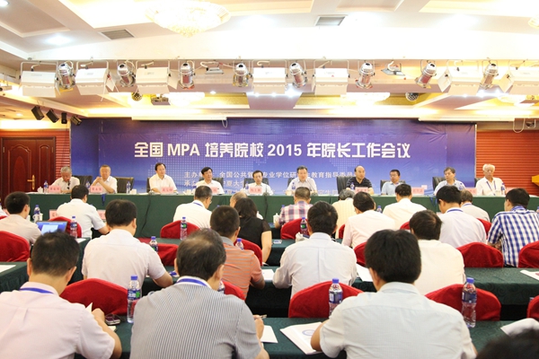 2015年全国MPA培养院校院长工作会议于8月22日在银川宁夏大学召开,教指委主任委员、人力资源和社会保障部原副部长、国家公务员局原党组书记杨士秋;副主任委员、中共中央组织部人才工作局局长孙学玉,国务院学位委员会办公室副主任、教育部学位管理与研究生教育司副司长黄宝印,13位教指委委员以及来自204所MPA培养院校的260多位负责人出席了工作会议。