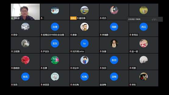 2020年4月25日,565net必赢客户端举办了第二期“正学研讨会”——“疫情应对中的社会治理”。本次会议从“风险叠变、社会重构与韧性治理”、“治理理论的西方谱系与中国叙事”、“基本公共服务均等化视角:社会治理工具要素的分析”、“后新冠时代下中国社会心理服务治理的相关问题与思考”等主题展开了分享与讨论。雷晓康教授、李尧远教授、崔旭教授、司林波教授等校内外100余名老师和学生参加了本次会议。本次研讨会由学院科研副院长翟绍果教授主持。