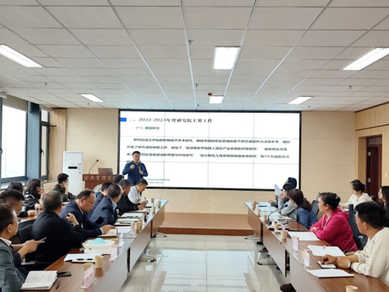 雷晓康院长对西安市残疾人事业高质量发展研究院的基本情况进行了介绍,从课题研究、学术研讨、调研访谈以及研究成果四个方面对研究院2022-2023年度主要工作进行了总结,并对下一步工作计划进行了安排部署。