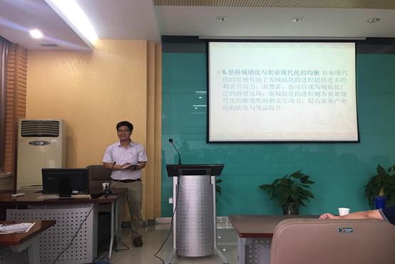 在正式报告开始前,曹老师对报告题目中出现的诸如中国省城、城市规模、多元测度等专有名词进行了简单的解读。本次讲座主要包括四方面内容:第一部分是研究动机和研究背景,面对城市规模不合理导致城市病、城市空间结构不均衡导致区域差距、城市规模结构不合理导致综合效应较低以及城市功能不合理导致城市蔓延等问题,分析城市规模的影响因子,探究城市规模体系的影响机理与演化方向;第二部分为基本思路与研究方法,总体上分为理论研究、实证研究和政策应对研究三种方法;第三部分为文献综述和研究意义,指出了中国城镇化的总体特点,阐述了有关城市规模的争论与共识,讲解了城市规模测度方法的演进,指出了本课题的学术价值和应用价值,通过省域城市规模的多元测度与空间分析,有助于为构建合理的城市规模体系、适应经济新常态、推动中国新型城镇化健康进行提供一定的参考依据;第四部分为研究对象与主要内容,指出了研究对象为空间维度、时间维度和内容维度,研究内容主要从理论研究和实证分析两个方面展开,实证方面具体包括数据来源、城市规模多元测度以及中国省域城市规模的空间计量分析,最后提出了城镇化均衡发展的对策:包括坚持大城市、中小城市均衡发展的态势,城市群培育与东、中、西部城市均衡发展,坚持政府职能与市场资源配置职能的均衡,坚持城镇化与农业现代化均衡等。曹飞副教授的报告内容丰富,使在场师生受益匪浅。