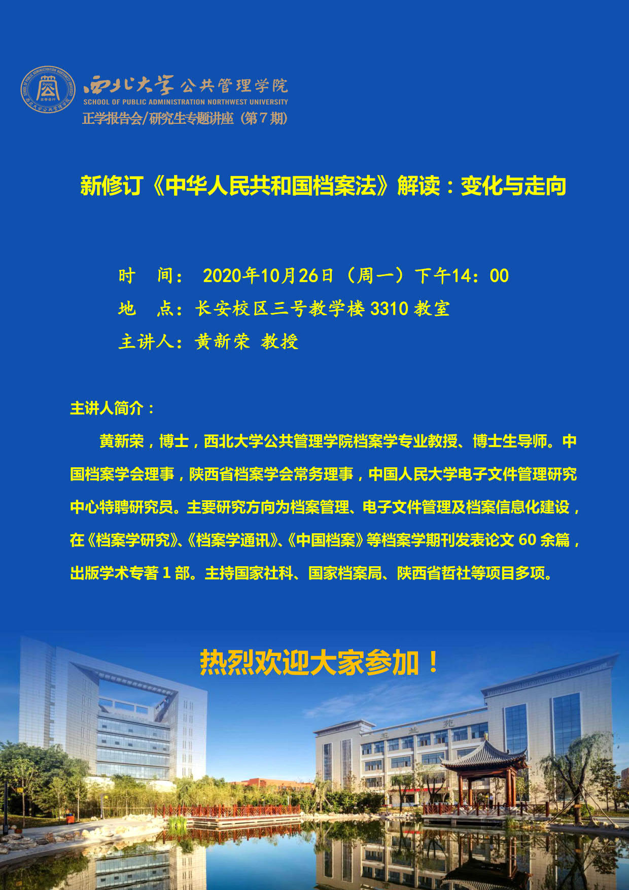 正学报告会/研究生专题讲座(第七期)——“新修订《中华人民共和国档案法》解读:变化与走向”