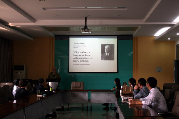 2015年9月15日上午,我院在三层会议室举行第13期中青年教师教学科研能力提升计划,邀请澳大利亚著名政治学家、墨尔本大学研究员、日本东京一桥大学国际公共政策客座教授诺曼·艾伯仁森(Norman Abjorensen)作了题为《21世纪的公共行政及其挑战:基于澳大利亚的视角》的学术报告。艾伯仁森在报告中着重分析了经济全球化对澳大利亚政治和行政提出的挑战和应对这些挑战时遭遇的政治行政限制,比较了中澳两国公共管理以及所面临的共同问题。