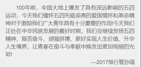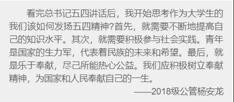 上一条:我院成功举行首届党支部书记微党课比赛 下一条:师生有话说 纪念五四运动100周年大会讲话心得体会