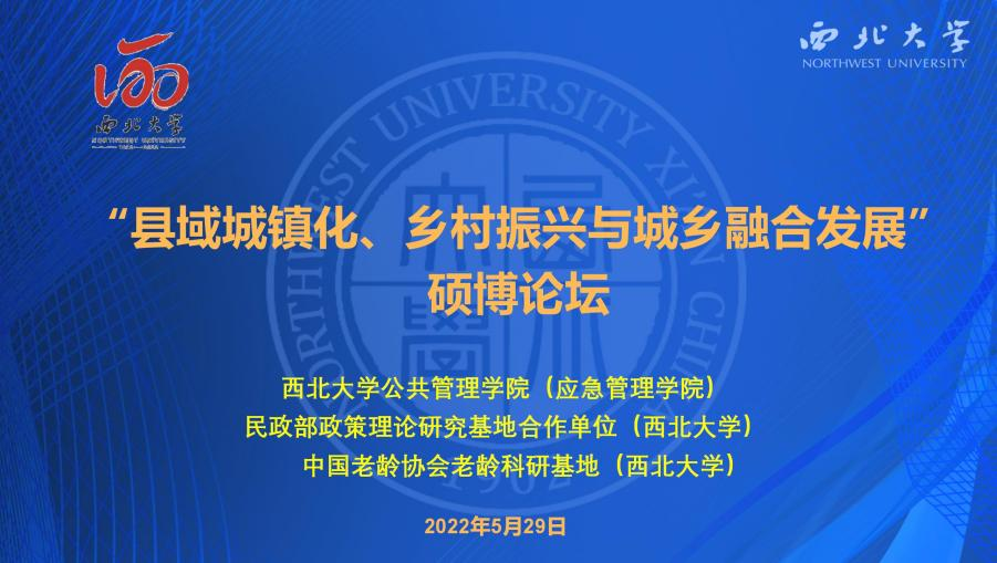 2022年5月29日,“县域城镇化、乡村振兴与城乡融合发展”硕博论坛在西北大学顺利召开。来自浙江大学、中国人民大学、中山大学、厦门大学、武汉大学、四川大学、东北大学、西北农林科技大学、华东师范大学、西南交通大学、西北大学等20余所高校的近百名青年学者和硕博士生线上参加会议。本次硕博论坛的成功举办,一方面促进了全国青年学子对县域城镇化、乡村振兴与城乡融合发展议题的学术交流,另一方面也是我校贯彻落实党中央国务院关于乡村振兴、共同富裕与新型城镇化建设等战略方针政策的一次有益的学术实践,为促进城乡融合发展贡献了西大力量。