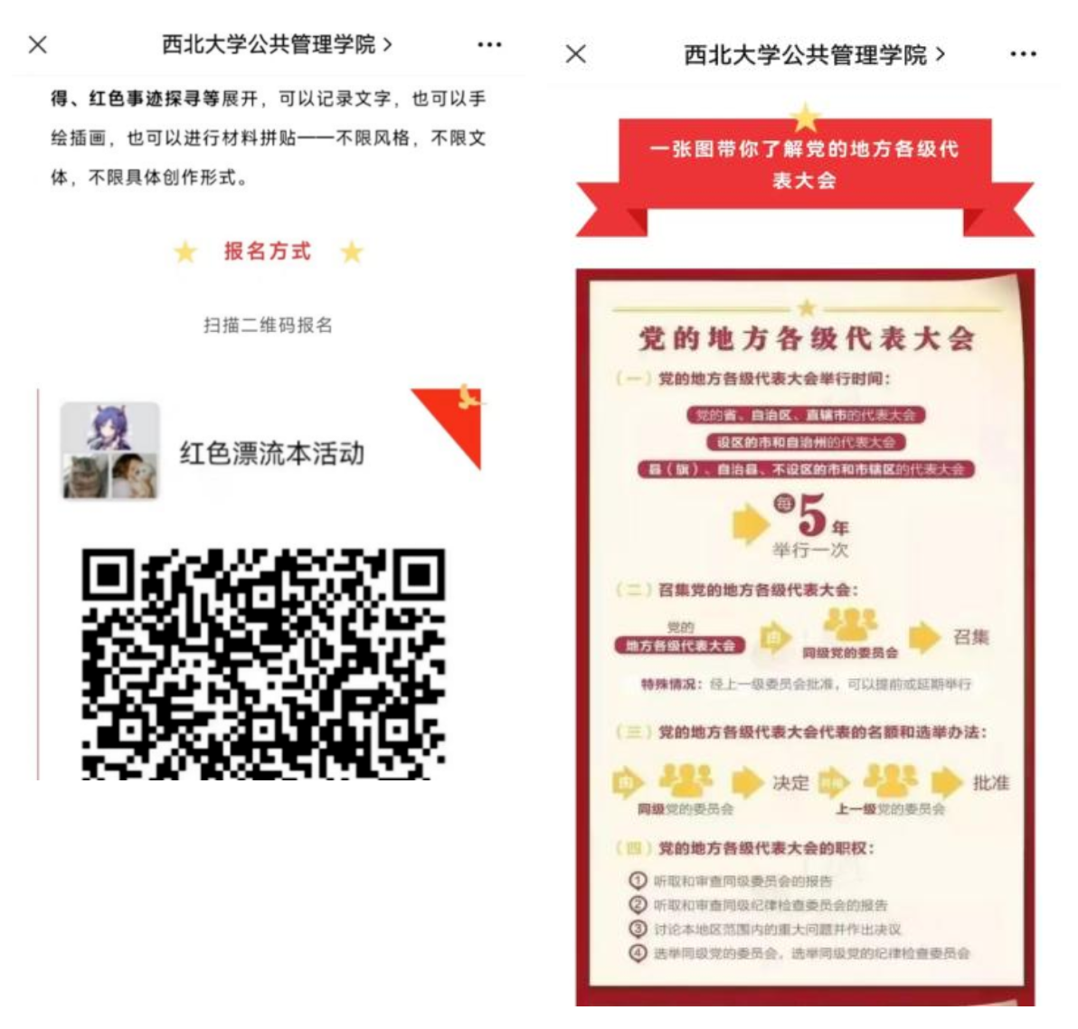 为了加强学生对党的二十大的领悟,增强学生对西北大学120周年校庆相关活动的积极性以及对西北大学校史的理解,增强我院分党校、校团委和学生会等学生社团开展了一系列内容丰富、形式多样的学生活动。