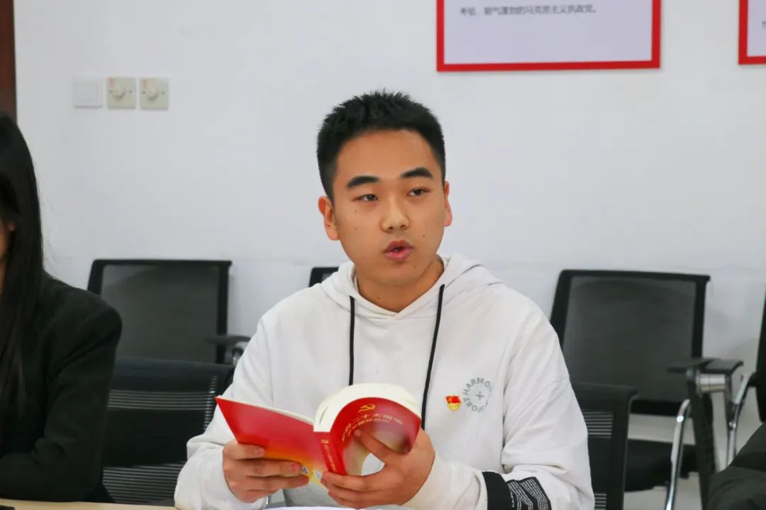 首先,陈宇航同志、蔡予昕同志分别带领与会党员学习了党的二十大报告及二十大党章修正案。陈宇航同志从“怎样将新时代党的伟大自我革命进行到底”,“如何理解培养什么人、怎样培养人、为谁培养人是教育的根本问题”两个问题着手,阐述了自己学习二十大报告的心得感受。蔡予昕同志则梳理了党章的百年建设历程,从《二十大党章修正案学习回答》出发,简要分析了党的二十大对党章进行修改的必要性和基本考虑。