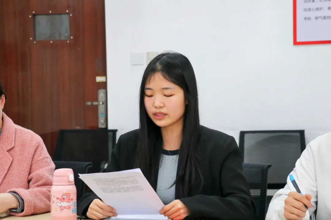 会上,支部书记杨嘉仪同志分别以“奠定‘总基调’,筑牢理想信念之魂”、“点燃‘加速器’,走好青春建功之路”、“织密‘防护网’,夯实组织建设之基”为题梳理汇报了支部2022年度的工作。同时针对支部委员会工作情况,在会前广泛征求意见建议的基础上,支部组织委员白昕怡同志代表支部委员会作工作汇报,并报告会前支部委员会查摆问题及制定整改措施情况。同时,支部党员以党小组为单位开展了组内的党员自评和互评环节。