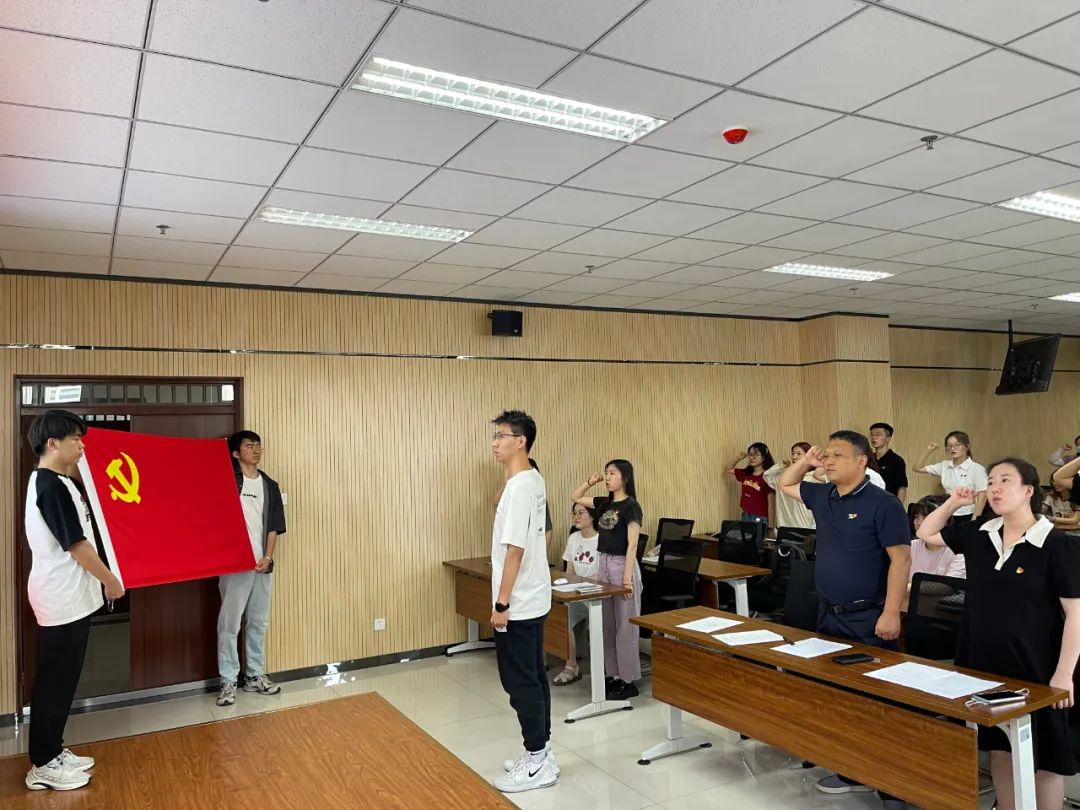 大会第三项,杨嘉仪同志宣读2023年上半年新发展预备党员名单。领誓人白冰阳带领全体与会党员面向党旗高举右拳,庄严宣誓。这既是对新党员的一场深刻党性教育,也是对老党员的党性洗礼。强化党员意识,矢志不渝听党话,坚定不移跟党走,不断叩问初心、守护初心,不断坚守使命、担当使命,始终做到初心如磐、使命在肩。